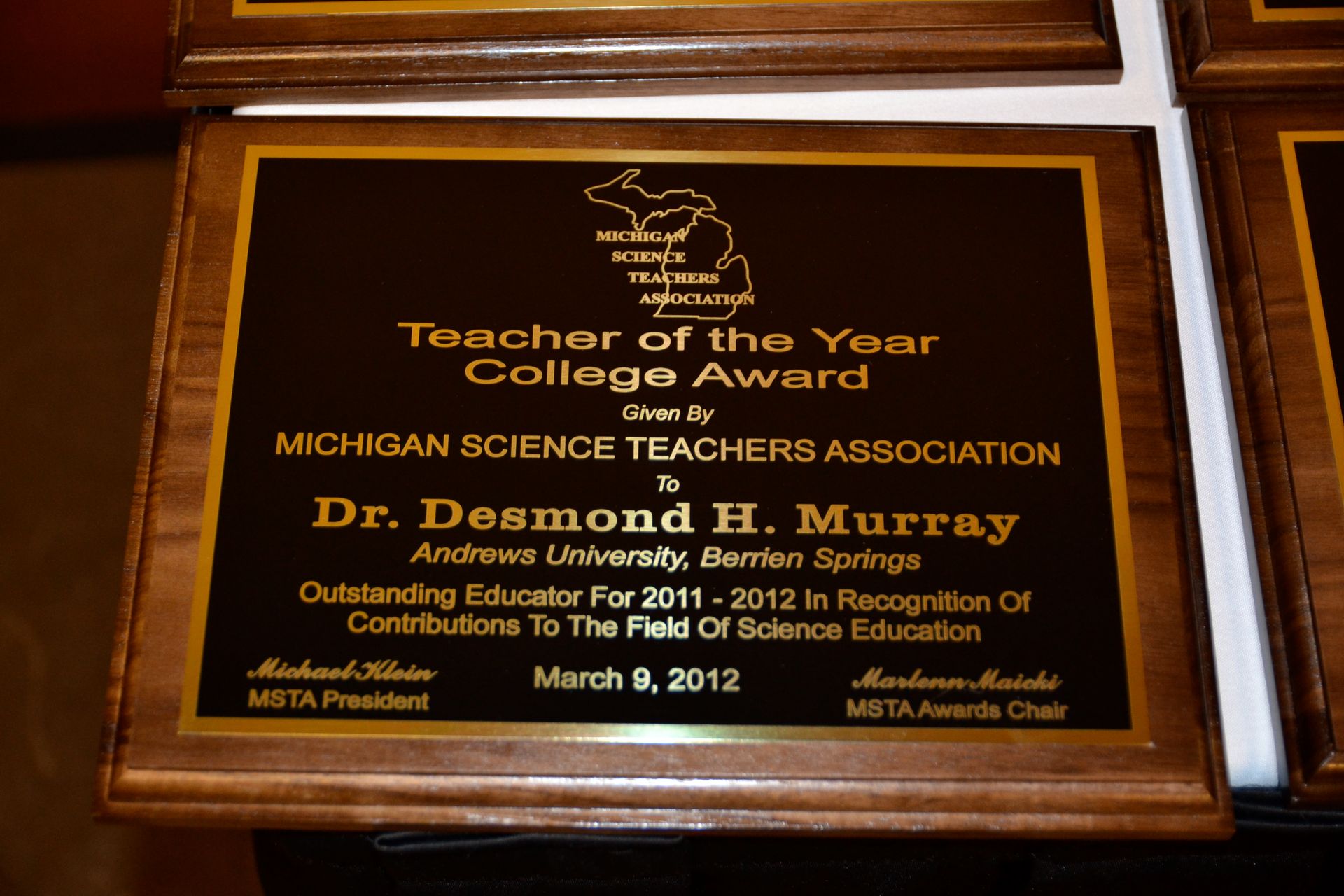 College Science Teacher of the Year Award: Michigan Science Teachers Association